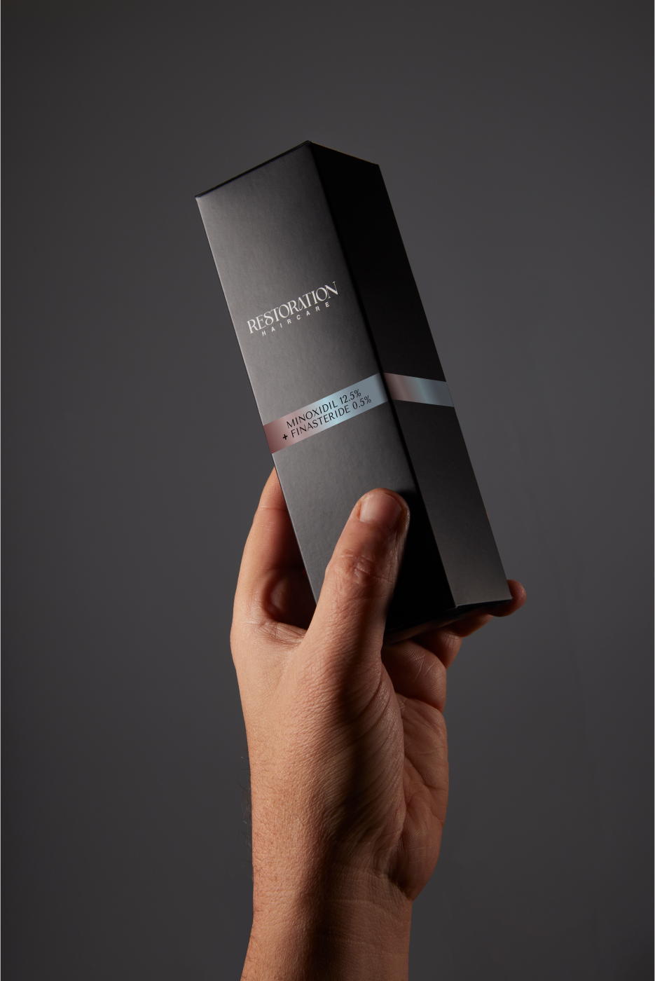 Restoration Haircare’s unique treatment with 12.5% Minoxidil, Caffeine and Finasteride delivers a three-in-one solution, in a single daily application, that you cannot get over-the-counter. The perfect blend of efficacy, efficiency and convenience.
